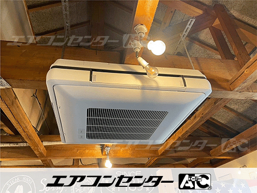 天井吊形 業務用エアコン 5馬力シングル 1式を設置いたしました。この度は最上のご評価をいただき大変嬉しく思います。新しい機器への入れ替えのメリットは様々ございます。①電気代が抑えられる ②本体がコンパクトになる ③静音性が高い ④環境負荷の低減 などです。新しい空調機のもと、快適にお過ごしいただければ幸いでございます。