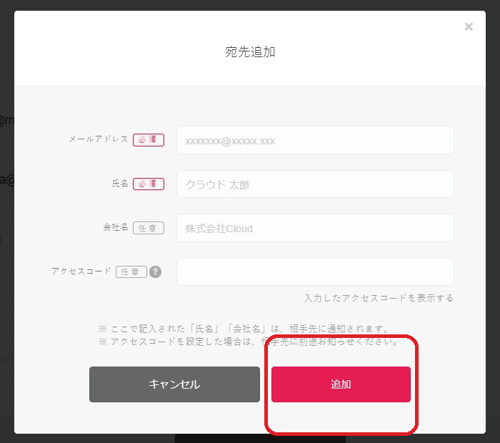 2.「宛先を追加」をクリックします。