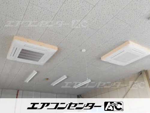天井カセット形4方向吹出 業務用エアコン 6馬力ツイン 1式、1.8馬力シングル 2式、ハウジングエアコン セット 天井カセット2方向形 業務用エアコン 4.0kW 1式を設置いたしました。今後もエアコンセンターACではお客様に寄り添ったご提案と、ご満足いただける施工品質を追求して参ります。他の機器入替をご検討の際には、是非またお声掛け下さい。